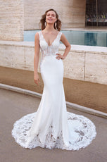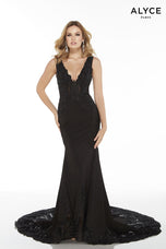 Show off your curves in this captivating long fitted evening gown by Alyce Paris black label. 5065, features a fully laced boidce, and silhouette made of stretch crepe. A Deep v-neckline with thick straps that forms into an open v-back. Completing this look is a sweep train that will sway with every step you take ! This is perfect for any Gala, Prom or formal occasions.