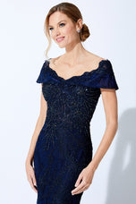 Ivonne D style 221D42 is breathtaking. This fully lace gown has an off the shoulder neckline with short sleeves. The lace has shimmering accents that will pick up the light as you walk by. The fit and flare silhouette will accentuate your body showing off your perfect shape. If you are looking for a mother of the occasion dress or a special occasion dress then this style is perfect for you.