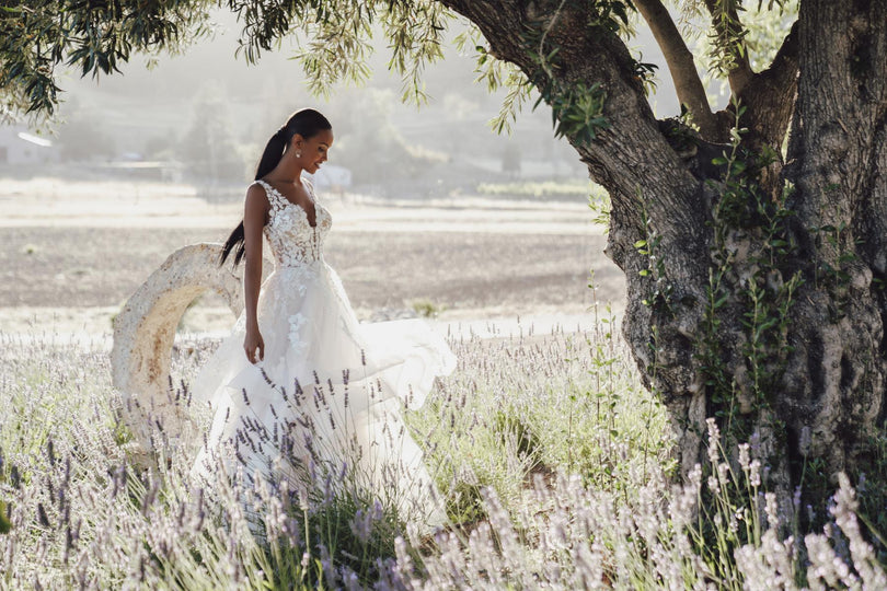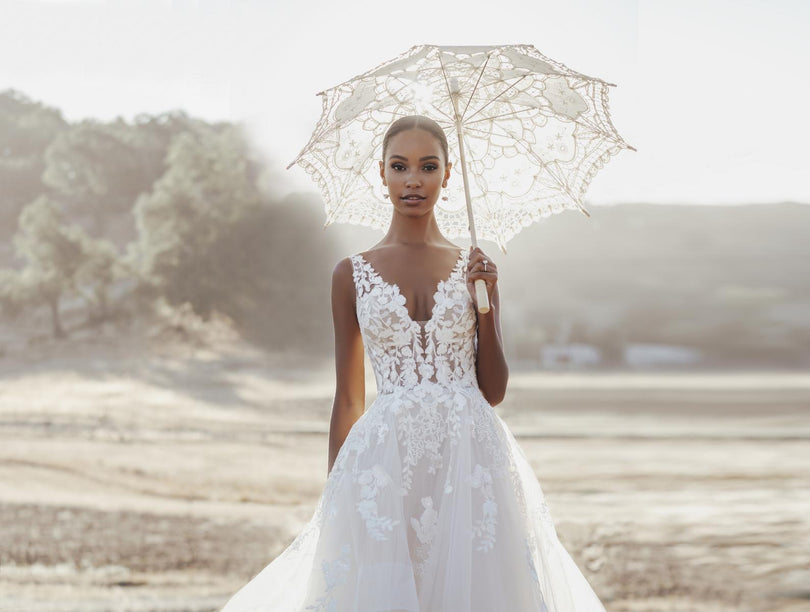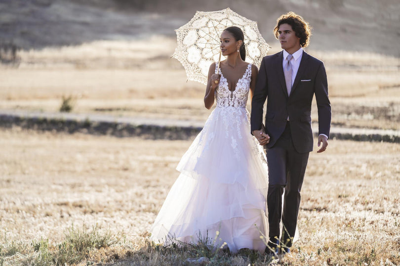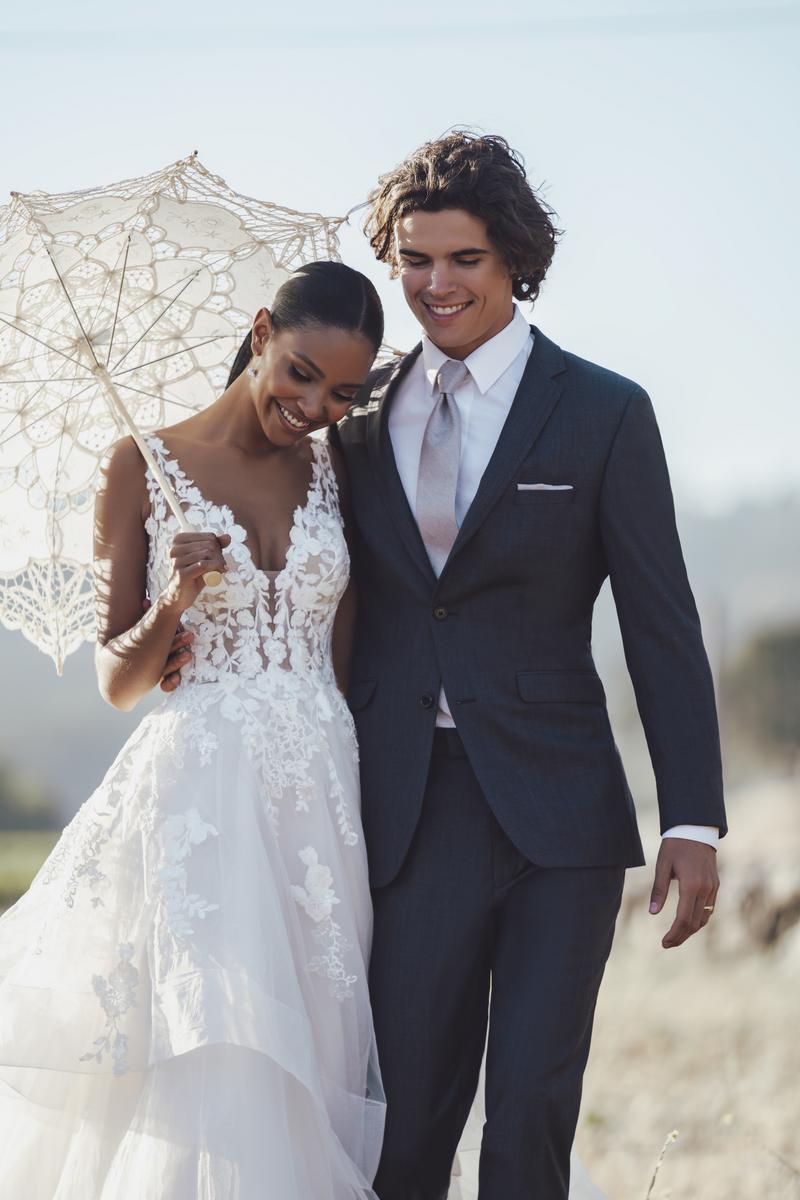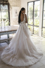 Look absolutely stunning in this romantic, flirty and fun ballgown by Allure Bridals. The R3605 style features a plunging neckline and illusion bodice with tiers of ruffles and delicate lace straps. The back of the dress is a low open illusion that will be sure to make a statement. Perfect for a 2023 wedding, this dress is sure to make your special day unforgettable. Please call our Dallas, Texas location to check in for availability, pricing, and current ship dates.