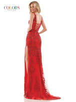 Dazzle all night long in this unforgettable Colors gown that promises to make every moment magical. The 2990 dress is crafted from radiant glitter sequin mesh fabric, ensuring you sparkle effortlessly with every moveperfect for making a grand entrance or owning the spotlight on the dance floor. The elegant V-neckline adds a touch of sophistication, while the structured corset cinches the waist for a flattering, sculpted silhouette. A bold thigh-high slit completes the look, adding just the right amount of drama and confidence.This show-stopping gown comes in a stunning range of colorsblack, deep green, purple, red, and royalso you can shine in the shade that speaks to your style. Elegant, glamorous, and truly mesmerizing, the 2990 dress is designed to make your night unforgettable.
