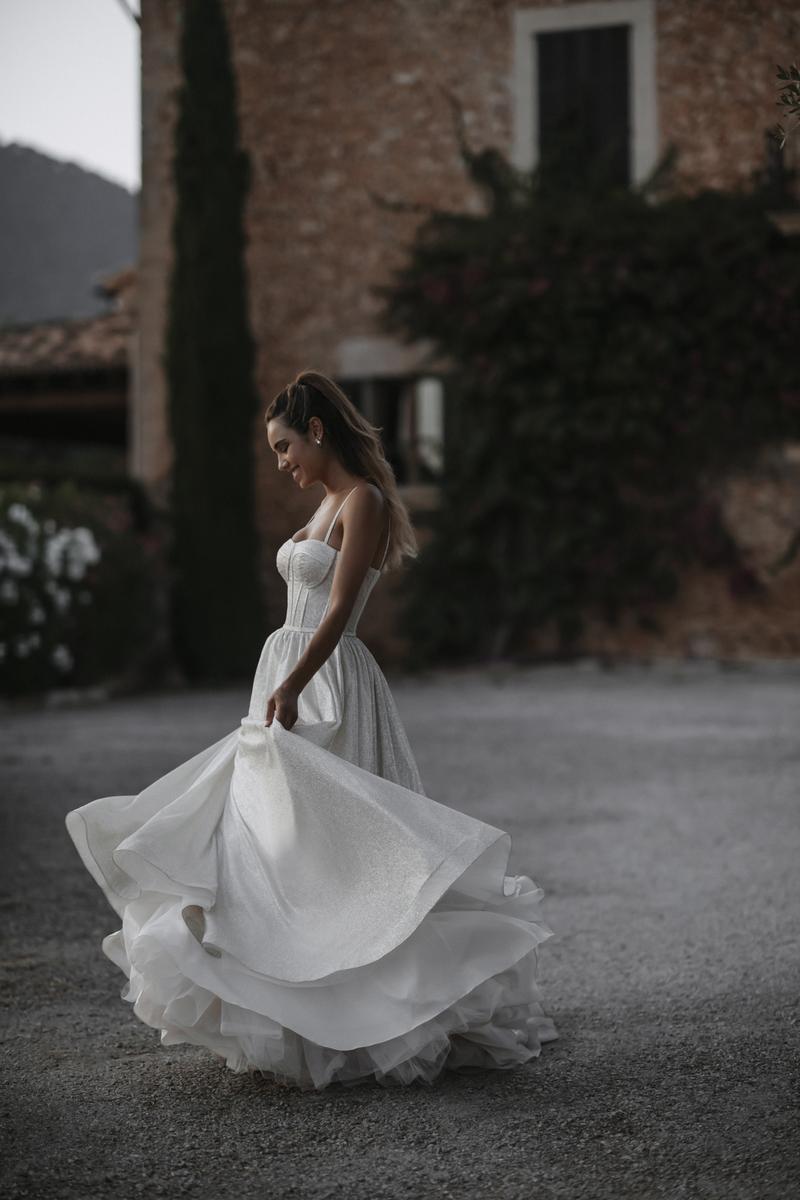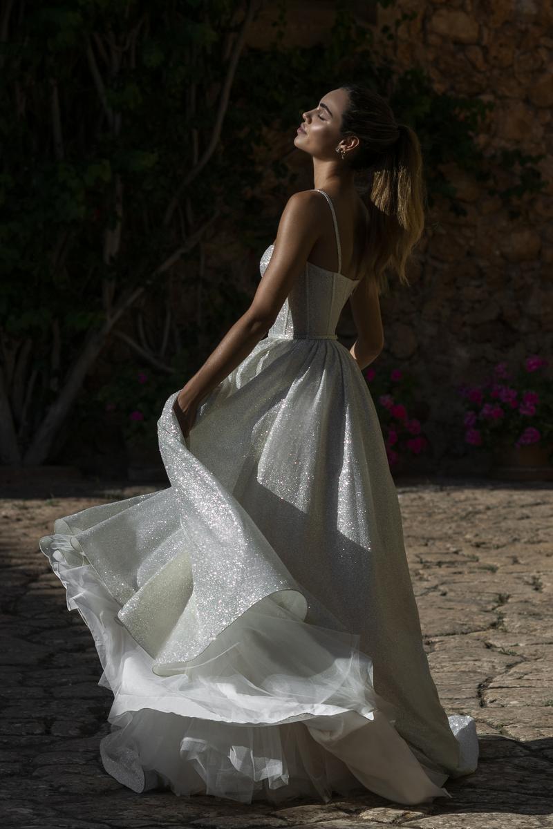 Like a starry night, this glowing ballgown is named Marina and she sparkles with every step! Designed for Abella's Spring 2022 Wedding Dress collection for Allure Bridals, she features a traditional A-line skirt and modern exposed boning along the bodice, giving her fabulous formal vibes. Also perfect for a Disney-inspired outdoor ceremony, you'll absolutely steal the show in this gorgeous, attention-seeking gown--as you should! Bold brides will love it! Please call our Dallas, Texas location to check in-store availability, pricing and current ship dates.