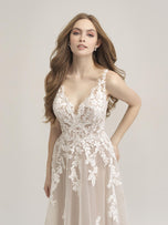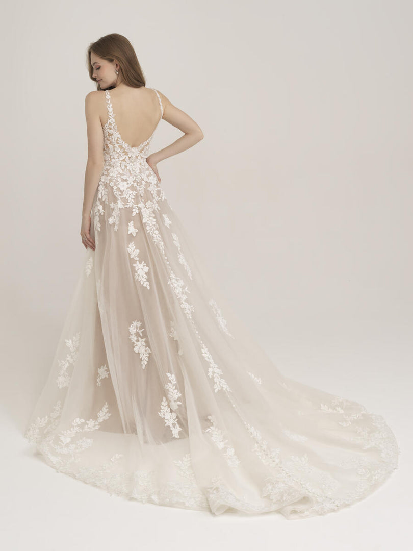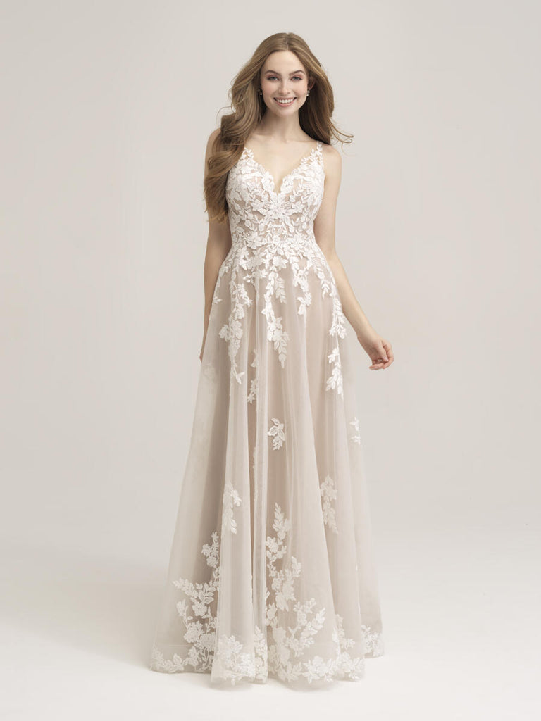 Style 3457 is a fun, flirty and flattering bridal gown from Allure's affordable Romance Bridal gown collection. Blossoms and leafy vines fall down the bodice and skirt of this sleeveless A-line gown, making it a perfect fit for your beach wedding or romantic garden ceremony. A v-neckline and low v-back complete the look along with a beautiful illusion lace. Whether you're body type is apple, pear-shaped or hourglass, you'll love the way you feel in this gorgeous gown. Please call our Dallas, Texas location to check in-store availability, pricing and current ship dates.