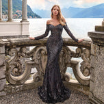 Get it girl! This jaw-dropping form fitting gown is giving me Jessica Rabbit Vibes! This long sexy fit and flare formal gown will flatter your figure just right.27544, showcases an off-the-shoulder sweetheart neckline with long sleeves. The gown is finished off with allover sparkling sequins that will having you shining bright under the dancing lights!