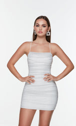 Steal the spotlight at your next homecoming or cocktail event with the Alyce Paris 4570. This stunning dress drapes beautifully in a lightweight mesh fabric, ensuring a comfortable and breathable fit throughout the night. The flattering square neckline elegantly frames your shoulders and collarbone, while the ruching detail on the bodice creates a slimming and figure-hugging silhouette. The Alyce Paris 4570 showcases a straight silhouette that flatters a variety of body types, and the strappy back adds a touch of delicate detail. This versatile dress transitions seamlessly from a formal homecoming dance to a chic cocktail party. Available in a range of colors (check retailer listings for details!), you can find the perfect shade to complement your style. With the Alyce Paris 4570, you're sure to turn heads and create unforgettable memories on your special night.