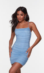 Alyce Paris Mesh Ruched Square Neck HoCo Dress 4570