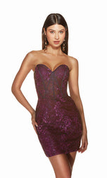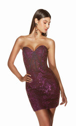 Alyce Paris presents a captivating short homecoming 2024 dress that embodies beauty and mystery. Crafted from glitter tulle fabric, this stunning piece shimmers with every movement. The strapless sweetheart neckline enhances its romantic allure, while the corset bodice provides a flattering, sculpted fit. The lace-up back adds a touch of vintage charm, ensuring a perfect fit and a dramatic exit. Perfect for making a lasting impression, this dress combines sophistication and enchantment, making it an ideal choice for any unforgettable evening.