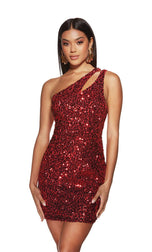 This short dress from Alyce Paris' Homecoming 2024 collection features a bold and unique design. The fitted silhouette is crafted from sparkling sequin fabric, ensuring youll catch every eye in the room. Its double one-shoulder straps add a chic asymmetrical touch, while the lace-up back provides a customizable fit that's both flattering and comfortable. Perfect for those looking to make a statement, this spunky dress stands out with its daring and different style. Whether you're dancing the night away or mingling with friends, this dress promises to keep you shining and confident all evening long.