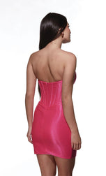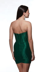 Embrace a sleek and sophisticated look for your homecoming or any formal event with the Alyce Paris Homecoming Dress (style 4925). This chic short dress is crafted from shiny jersey that drapes beautifully to flatter your figure. The fabric has a subtle sheen that catches the light without being overly glittery. The strapless design and straight silhouette exude timeless elegance, while the built-in corset ensures a perfectly customized fit that cinches your waist and creates a stunning hourglass figure. Unlike other corset dresses, this one features a clean, closed back for a touch of modern minimalism. Whether you call it a homecoming dress, cocktail dress, or simply a stunning short dress, this Alyce Paris creation is sure to make you feel confident and glamorous throughout the night!