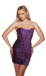 Capture the spotlight at your homecoming dance or any formal event with the Alyce Paris Homecoming Dress (style 4926). This dazzling short dress is crafted from luxurious glitter velvet that shimmers under the lights, making you the center of attention. The strapless design adds a touch of sophistication, while the straight silhouette flatters your figure. But the real magic lies in the details: a built-in corset with a lace-up back ensures a customized fit that cinches your waist and creates a stunning hourglass figure. A daring side slit adds a touch of leggy appeal, perfect for showing off your favorite heels. This versatile dress can also be a show-stopping cocktail dress or a glamorous short dress for any special occasion. Whether you call it a homecoming dress, cocktail dress, or short dress, this Alyce Paris creation is sure to turn heads and make you feel confident and unforgettable.