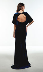 Looking for a modest yet classy gown? This formal gown designed by Alyce Paris is the one for you! 61058, showcases a v neckline with long cap sleeves that form into a keyhole back opening. The fitted gown is fully made in soft and delicate velvet fabric, making it the perfect attire for any Fall or Winter formal!