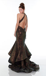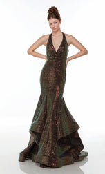 Feel like the Queen of the night in this trumpet evening gown by Alyce Paris. 61211, features a deep v-neckline with thick straps that wrap around your neck for support. The flared layered skirt with horsehair hem and a sweep train that will sway with every dance move you make!