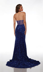 61500, is the perfect choice for you! This Alyce Paris has all the right details you're looking for. The strapless sweetheart neckline has radiant sequins, a sheer corset top follows and will accentuate your waistline. The fitted skirt is completed with matching sequins and beautiful long train!