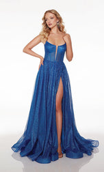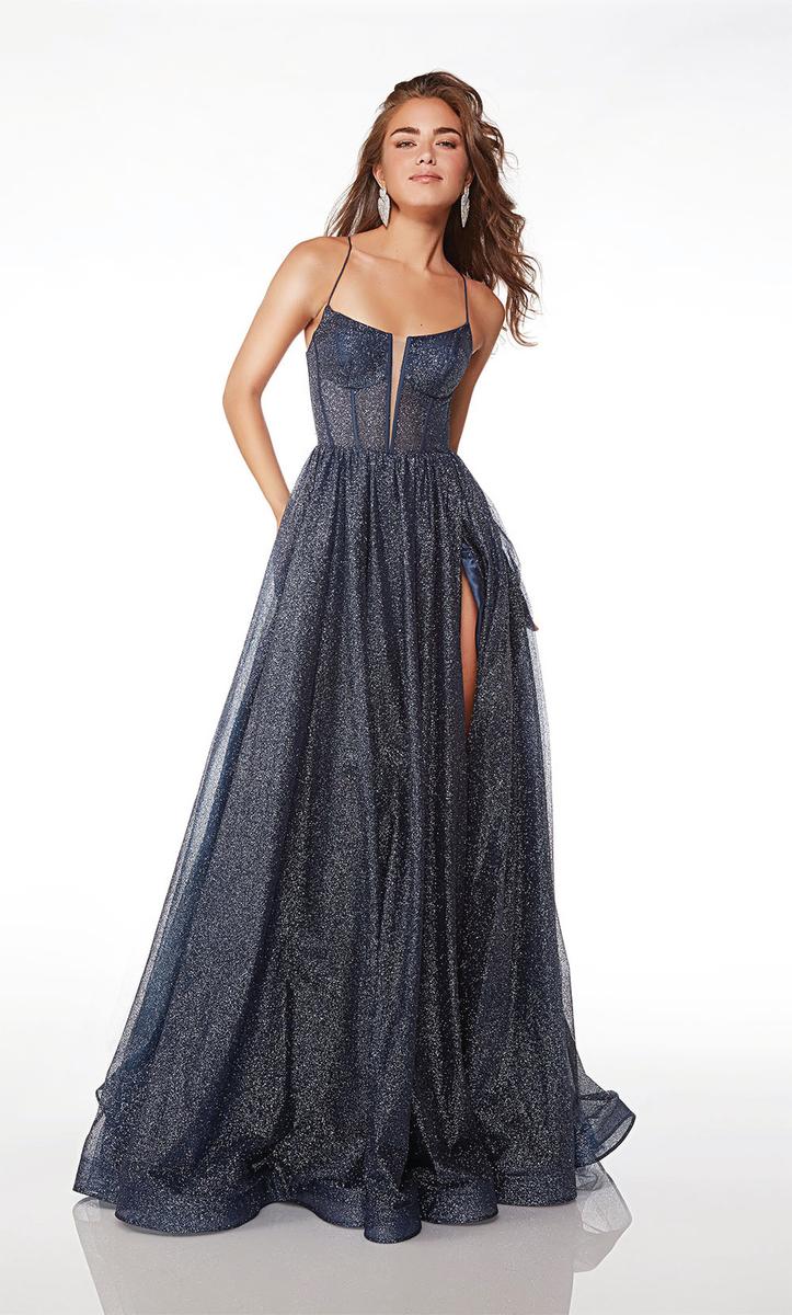 Look absolutely fabulous in this elegant Aline gown designed by Alyce Paris. 61600, has all the trendy details of 2024 Spring! A corset top with plunge neckline and thin straps. The open lace-up back will give you a snug fit and flowy skirt that will flow beautifully with every step that you take. The entire gown is created in gleaming glitter that adds the perfect amount of spark!