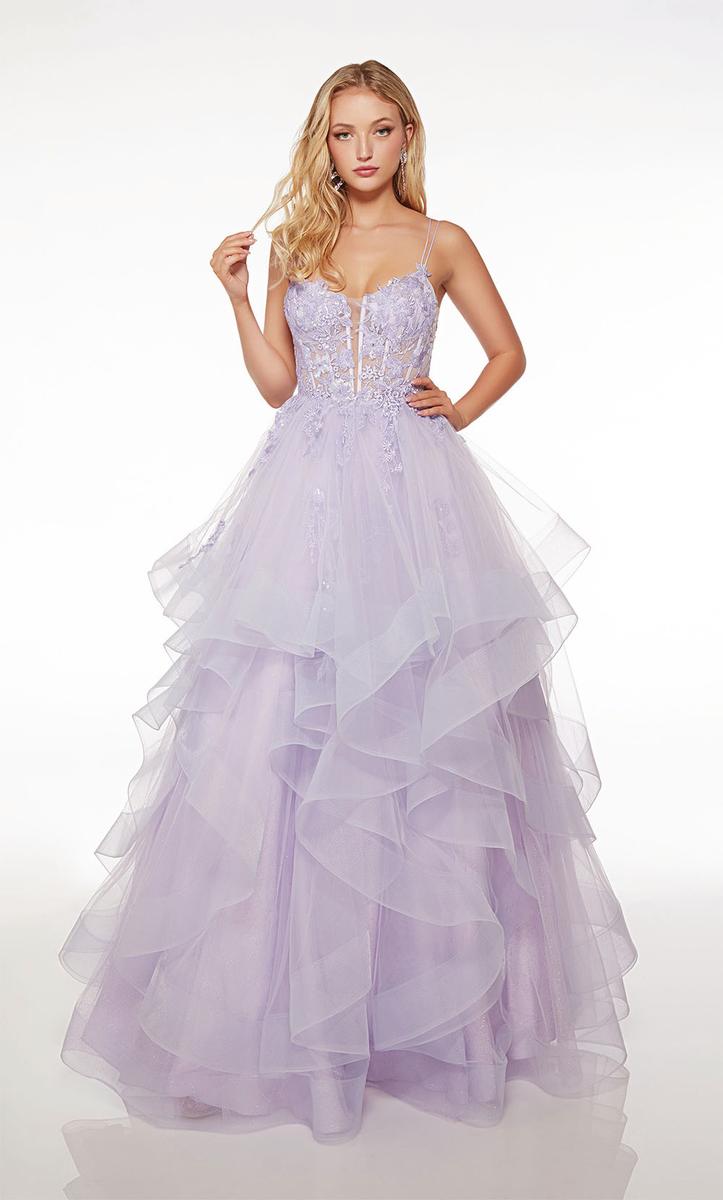 Alyce Paris' Style 61668 is a whimsical whisper of a dress, where delicate lace kisses your curves in a playful corset bodice. The tiered horsehair hem swirls like moonlight on a summer breeze, each twirl a whispered secret. A lace-up back hints at hidden fun, like a fairytale adventure waiting to unfold. This enchanting dress isn't just for looking magical, it's for feeling it - own your Sweet 16 magic in every sparkle and twirl. Choose this dress, find your dazzling match in Alyce Paris' options, and step into your own enchanting fairytale! (Bonus: add playful jewelry and sparkly shoes for the full spell!)