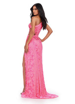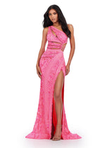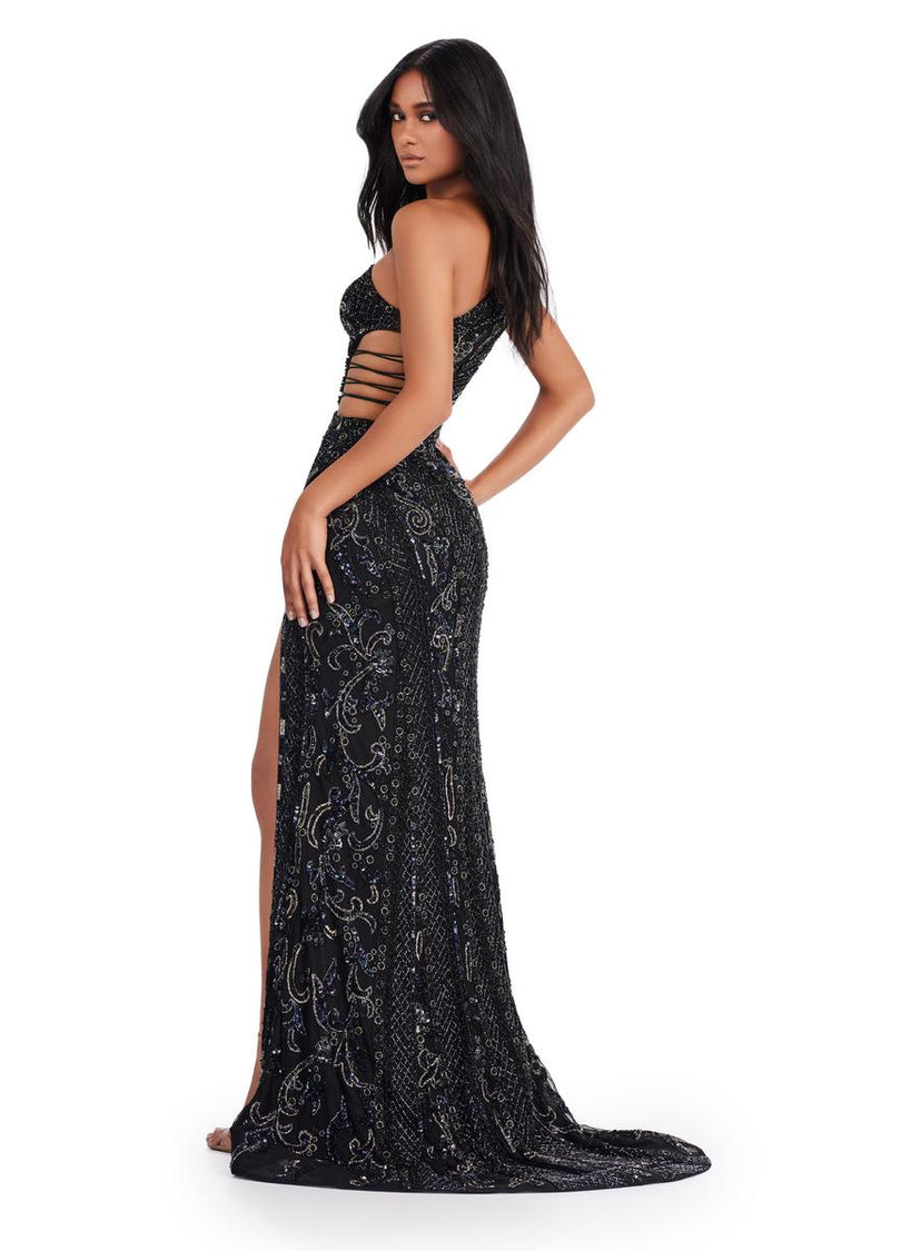 Wow the crowd in this fabulous fully beaded one shoulder gown. This dress features an intricate beaded design and asymmetric cut outs through out the bustier.