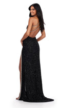 We're obsessing over this glamorous gown designed by ASHLEYlauren, style 11635. This slim fitting gown is fully beading from top to bottom and will shimmer all night long. A one-shoulder neckline with cutout adorned with beading and thigh-high leg slit with matching beading. The gown is finished with a sweep train that will sway with every dance move you make! Be on the next level when you pick this stunning prom dress!