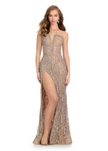 **All eyes will be on you in the ASHLEYlauren Beaded Fringe Strapless Prom Dress 11999!** This enchanting fully beaded gown is designed to make a statement. The strapless V-neck silhouette with a plunging neckline is adorned with a dazzling array of fringe and intricate beadwork that sparkles with every move. A daring left leg slit adds an element of allure, creating the perfect balance of sophistication and boldness. Ideal for prom, pageants, or any special occasion, this gown guarantees youll stand out in the most glamorous way. The shimmering beads and dramatic fringe create a mesmerizing effect, ensuring you steal the spotlight. Whether you're walking the runway or dancing the night away, this prom dress will leave a lasting impression. With its flattering fit, plunging neckline, and bold details, ASHLEYlauren Style 11999 is the ultimate pageant dress and prom gown for making an unforgettable entrance. Pair it with sleek accessories and heels for a flawless, show-stopping look!
