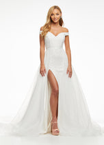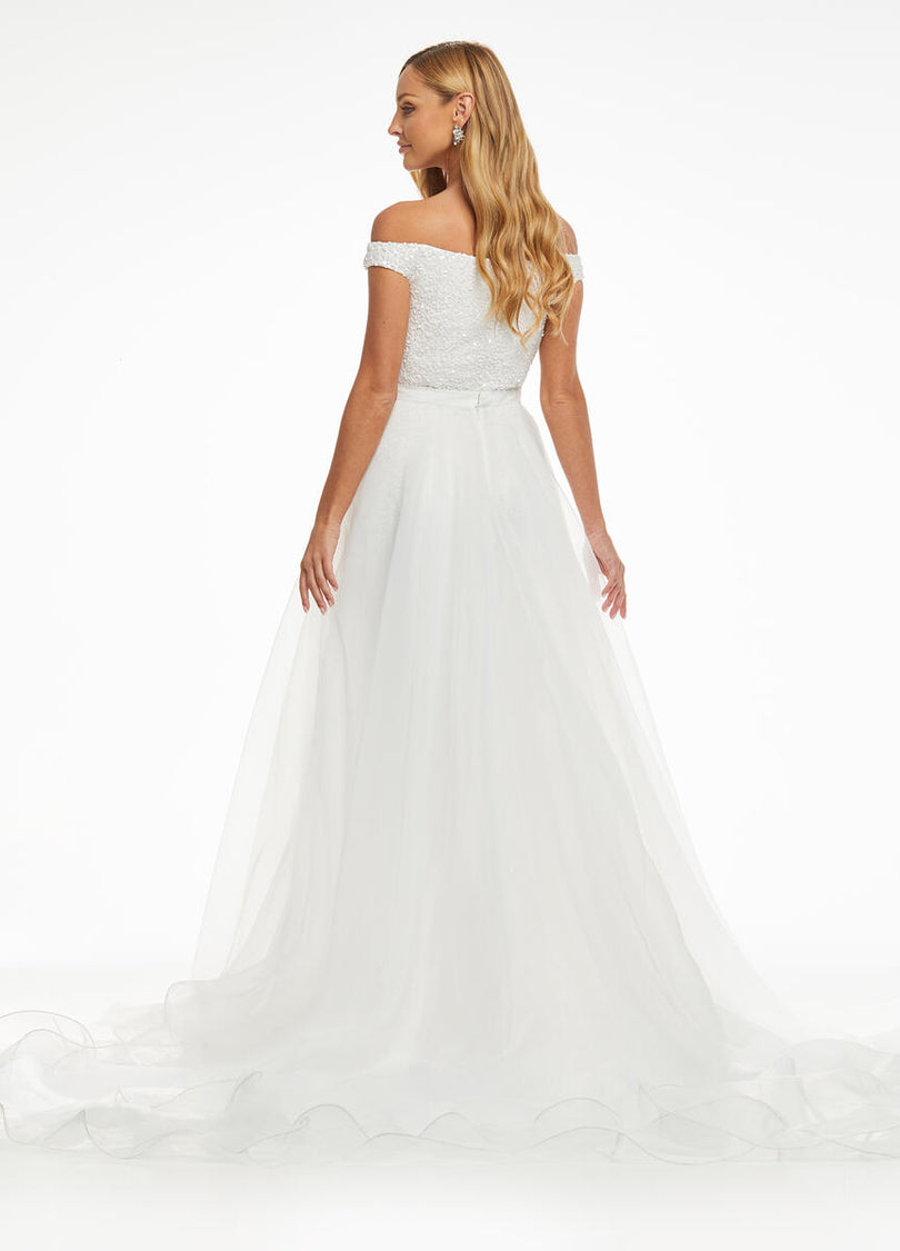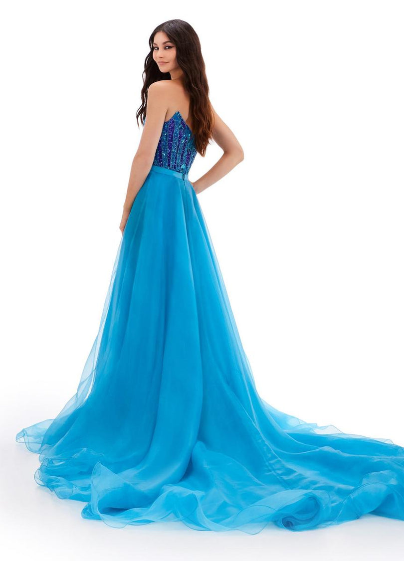 Dare to be different when you add this organza overskirt to your gown! 1739, is the perfect add for you and adds a perfect amount of drama to your look! This skirt is completed with a long lavish train that will sway with every dance move you make!