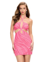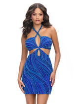 Hello, gorgeous! Turn heads in this fully beaded cocktail dress. Featuring a halter neckline, eye-catching cutouts and a unique bead pattern, you are sure to stand out in this dress!