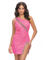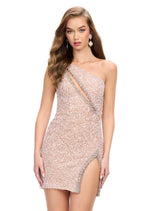 Shine bright in this fully beaded one shoulder cocktail dress that features an asymmetric cut out. The open back and left leg slit completes the look.