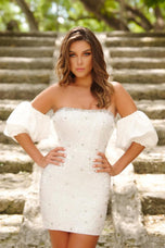 Step into the spotlight with the Ava Presley Homecoming 2024 short dress. Designed to dazzle, this enchanting piece features off-the-shoulder puff sleeves that exude elegance and charm. The fitted silhouette accentuates your curves, creating a captivating look that is both sophisticated and alluring. Crafted from sequin fabric, this dress sparkles with every move, ensuring you'll shine bright all night long. Perfect for a romantic evening, this dress is a stunning choice for any homecoming celebration. Make a statement and steal the show in the Ava Presley short dress, a true embodiment of glamour and style.