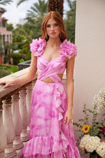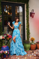 Turn heads in the Ava Presley Ruffle Open Back Prom Dress 40117! This flowy chiffon gown is the perfect mix of elegance and edge, featuring a deep V-neckline and delicate cap straps for a chic, feminine vibe. The eye-catching ruffle embellishments on the shoulders add a fun and flirty twist to the classic A-line silhouette.Designed with a low open back and a keyhole center detail, this dress brings just the right amount of drama. The multi-layered skirt with a thigh-high slit and sweep train makes it perfect for dancing the night away at prom or any special evening event.Pair this stunning long dress with bold accessories and your favorite heels to complete the look. The Ava Presley 40117 is all about making a memorable entrance and having an unforgettable night!