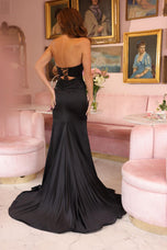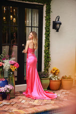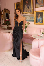 va Presley Strapless Corset Prom Dress 47027 is an absolute must-have for your next event! With a plunging corset bodice, this dress brings all the drama while keeping it classy. The ruched satin skirt flows beautifully, and that high slit? Total showstopper! Plus, the lace-up cut-out back adds a fun, flirty vibe thatll make you feel extra special. Perfect for prom or any night out, this gown is all about confidence and style.Pair it with some strappy heels and bold jewelry for the ultimate glam look! Whether youre hitting the dance floor or posing for photos, this dress ensures you shine all night long. Get ready to create unforgettable memories in a gown that celebrates your unique style!