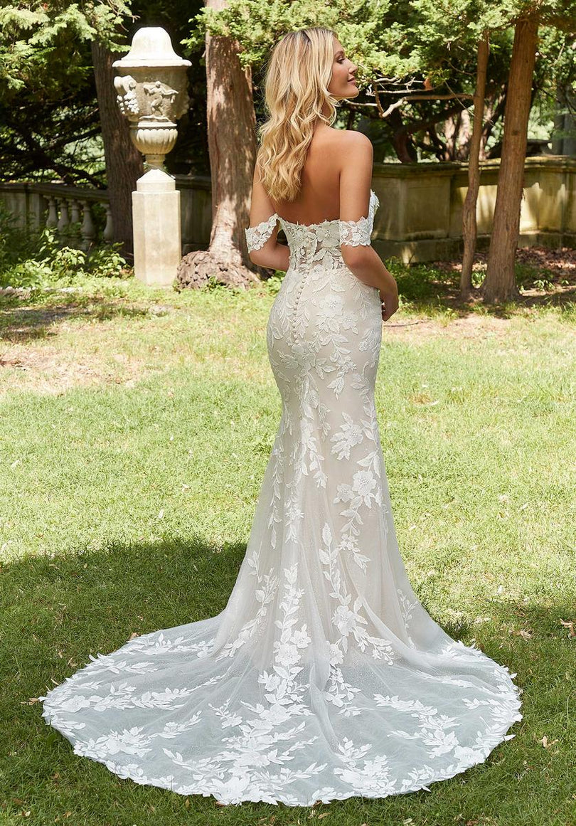 Introducing Morilee's Spring 2024 Pauline gown, a breathtaking fit and flare design that epitomizes beauty and sophistication. Crafted from sparkle net adorned with frosted, floral embroidery, this gown exudes enchantment and grace. The plunging neckline adds a touch of allure, while detachable off-the-shoulder sleeves offer versatility for the modern bride. For added flair, pair it with the matching overskirt (Style 11528, sold separately), creating a captivating ensemble fit for any destination celebration. Affordable yet flattering, this gown promises to make every bride feel radiant and confident on her special day.