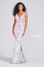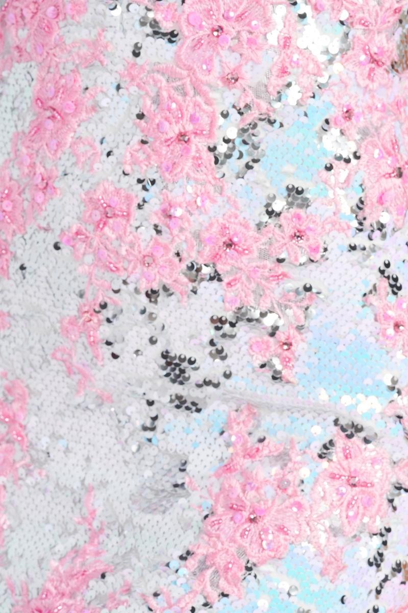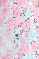 The fabric in this Colette by Daphne style is Stretch Sequin, Lace Appliques