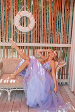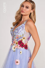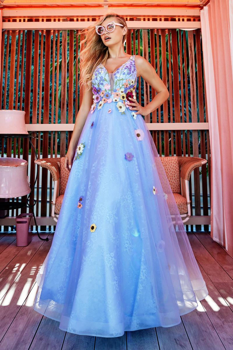 The fabric in this Colette by Daphne style is A-line with Flower Appliques, Horse Hair Hem