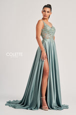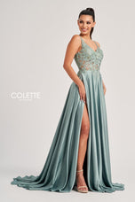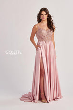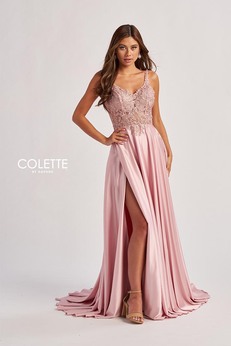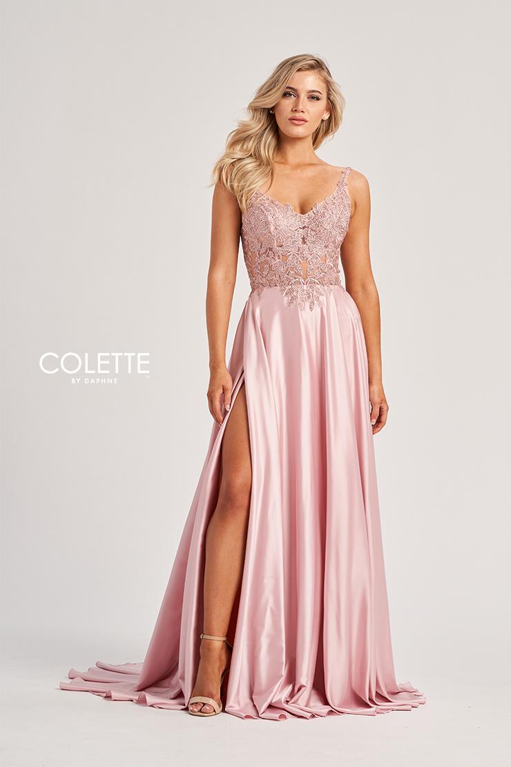 The fabric in this Colette by Daphne dress is Tulle, Embroidered Appliques, Accent Stones, Satin, Lining