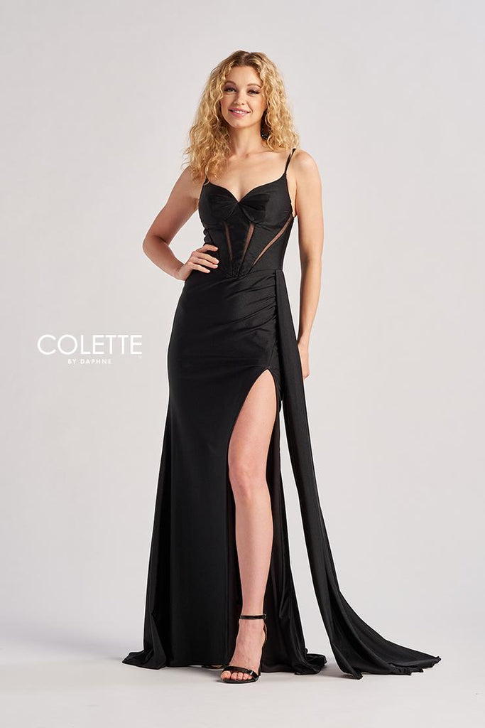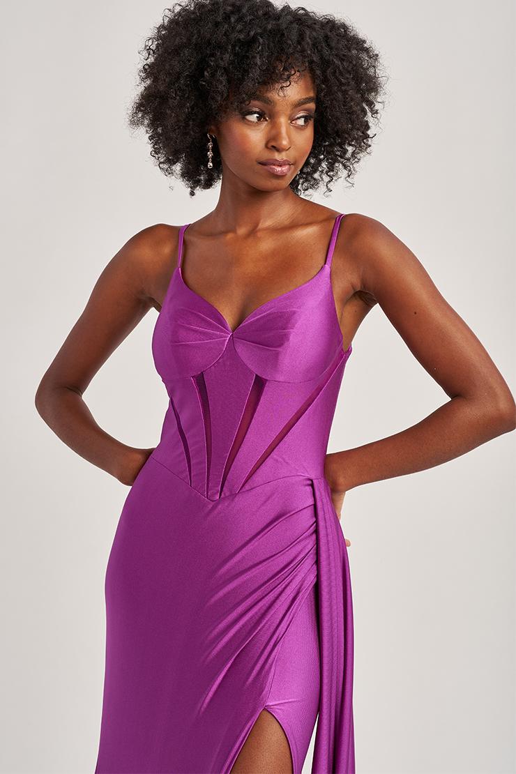 The fabric in this Colette by Daphne dress is Stretch Jersey, Tulle, Stretch Lining