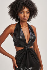 The fabric in this Colette by Daphne dress is Liquid Lame, Stretch Lining