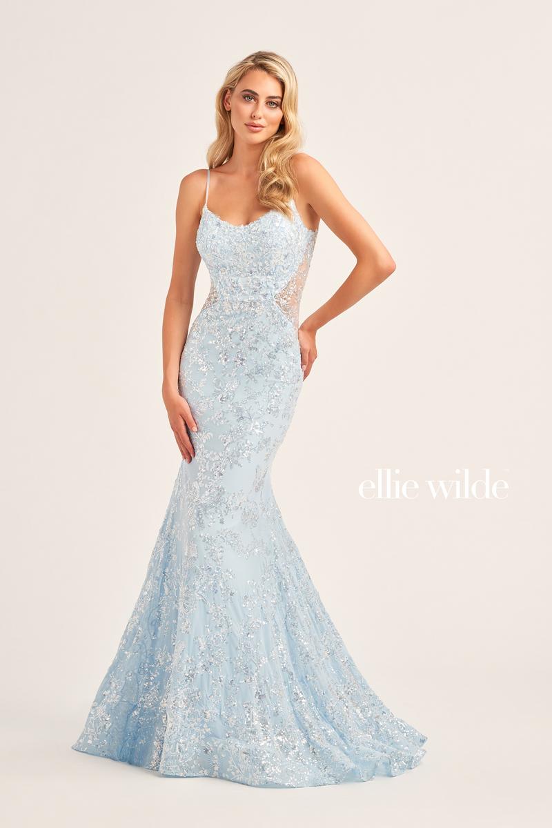 Ellie Wilde EW35015 prom dress is a captivating choice that effortlessly blends glamour with sophistication. Adorned with exquisite floral sequins, the gown sparkles with enchanting detail. Illusion sides add a touch of allure, subtly showcasing the figure. The scoop neck offers a classic yet modern look, while the low back adds a hint of drama. The mermaid silhouette ensures a flattering fit, accentuating curves in all the right places. Crafted from stretch mesh fabrication, this dress not only promises elegance but also comfort, allowing for ease of movement on the dance floor. With its perfect fusion of intricate detailing and a figure-flattering design, the Ellie Wilde EW35015 is a standout option for those seeking a memorable and stylish entrance at prom or any special occasion.