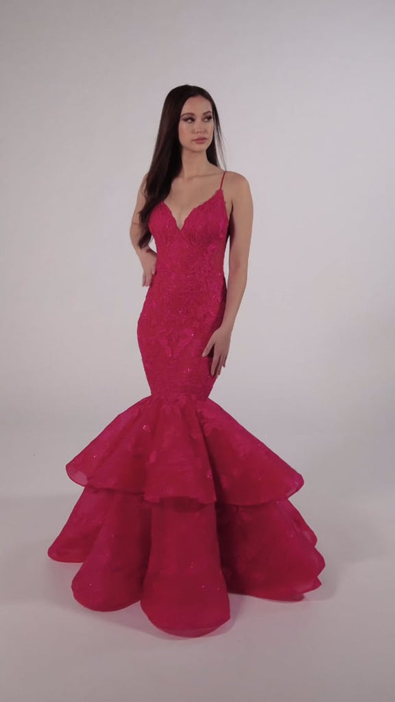 Ellie Wilde EW35092 Mermaid Prom Dress is a captivating ensemble that beautifully marries classic elegance with modern allure. The mermaid silhouette gracefully accentuates your curves, while the intricate floral lace applique detail adds a timeless and enchanting touch. The keyhole back cutout offers a hint of allure and sophistication, complementing the dress's overall design. With its layered full prom dress skirt, this gown exudes glamour and movement, ensuring you make a lasting impression at any formal event or prom night.