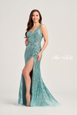 Ellie Wilde One Shoulder Sequin Prom Dress EW35096