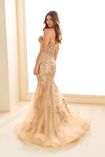 This stunningly perfected EW36053 fit-and-flare gown is perfect for making a statement. The off-the-shoulder floral-adorned straps are straight-up dreamy, framing the cutest sweetheart neckline for a romantic and flattering look. The bodice is crafted with a breathtaking corset design that features floral-lined lace and shimmering sequin appliques, giving you that glamourous sparkle. The lace-up back not only adds a touch of elegance but gets you the perfect fit. Flowing down into the tulle skirt, there are layers of ethereal charm, while the horsehair hemline creates that crisp, structured finish that will keep all your twirls on point. The floral embroidery and subtle glittery accents throughout the dress makes this gown look like it stepped right out of a magical garden. It's a must-have for your next event!