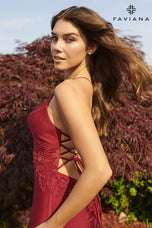Faviana Fitted Satin Lace Detail Prom Dress 11020