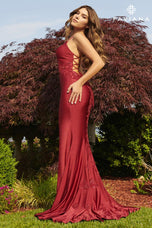The simplicity of this dress is absolutely breathtaking. 11020, is designed by Faviana from Spring 2024 Collection that displays a sexy plunged v-neck on jersey fitted silhouette. Dainty adjustable straps that crisscross on the open back and beautiful lace detail along the side and back. Be sure to visit us in store to see this beauty!