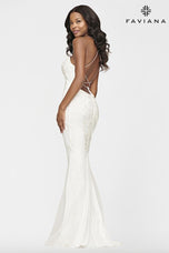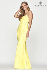 A sexy and sophisticated addition to your formal wardrobe, this is a fun and flirty lace and tulle long evening gown from Faviana's Spring 2022 Prom dress collection. Featuring a scoop neckline with applique detail, you'll absolutely love the lace up back! Sure to keep all the attention at your next social occasion, black tie affair or formal gala!