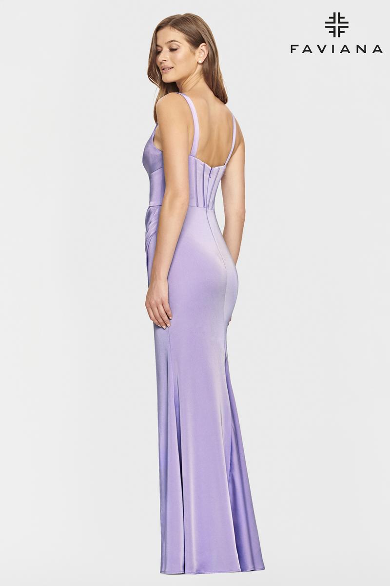 Glamour, Sleek, One of a Kind! These are just a few words that describe the fabulous S10847. This sleeveless gown is made of satin and has a v-neckline. Pleats in the chest and a mock corset add a flattering touch along with the gathers at the waistline. A gorgeous slit allows for comfort when you walk. Wear for Prom and other formal events!
