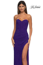 The fabric in this La Femme Prom style is Hot Stone Net Jersey