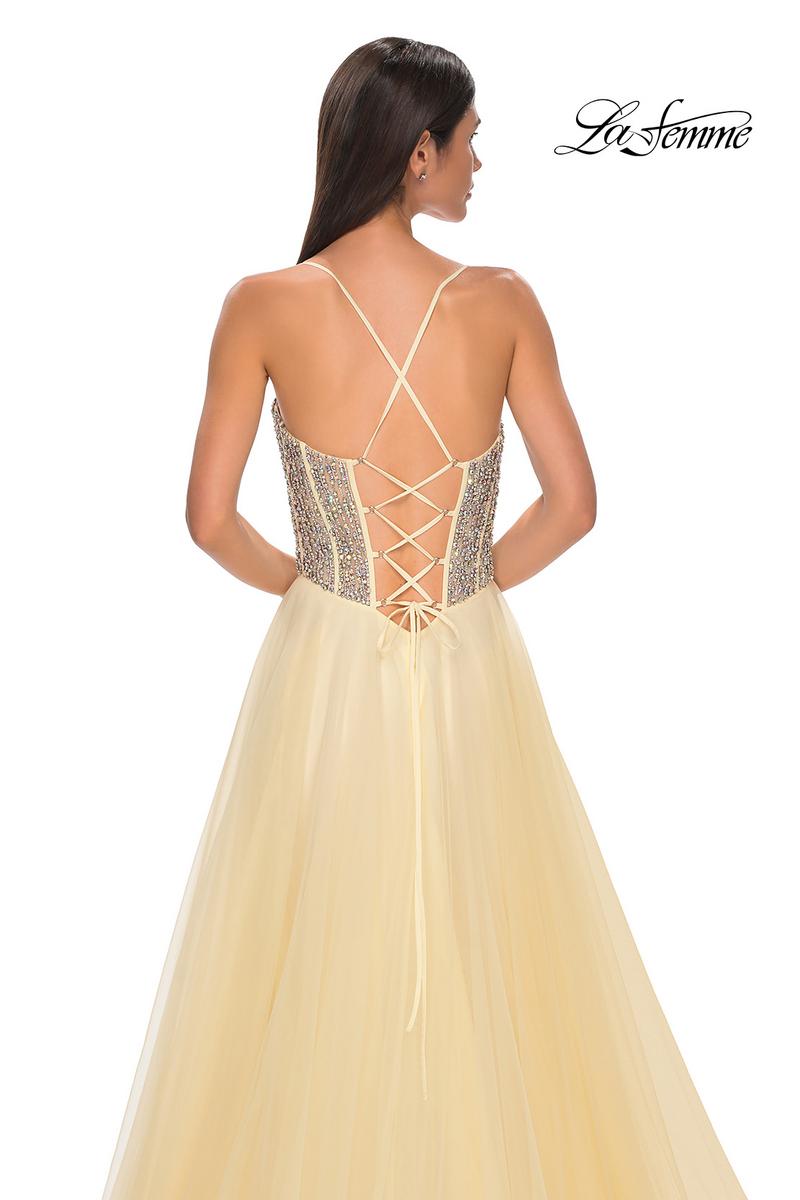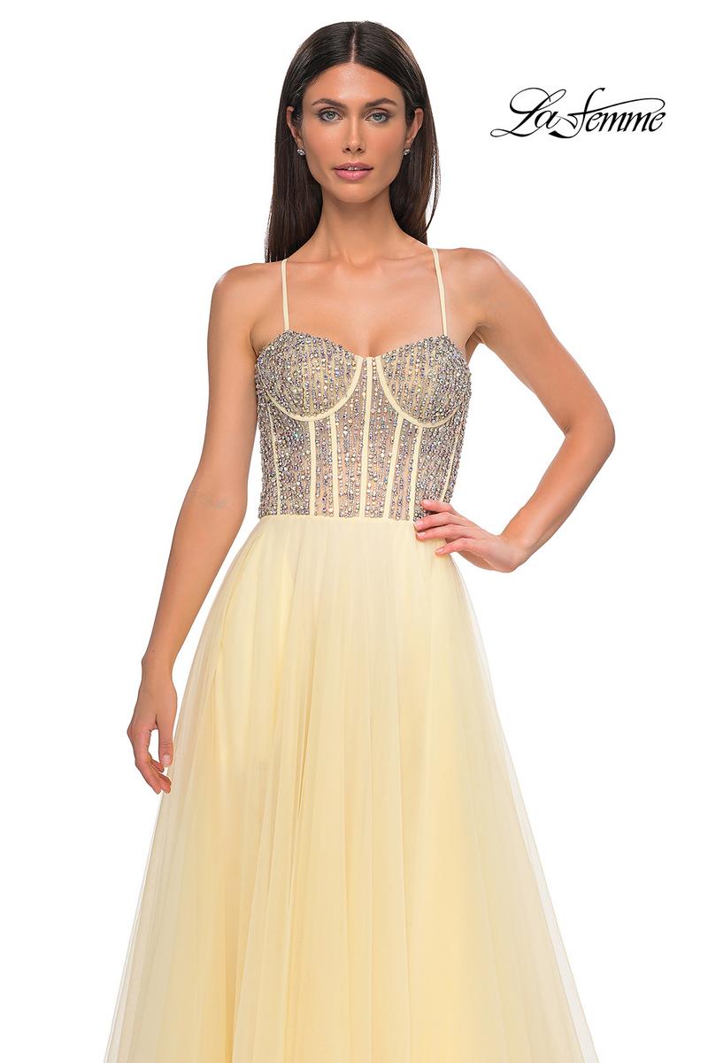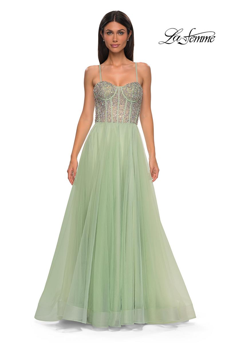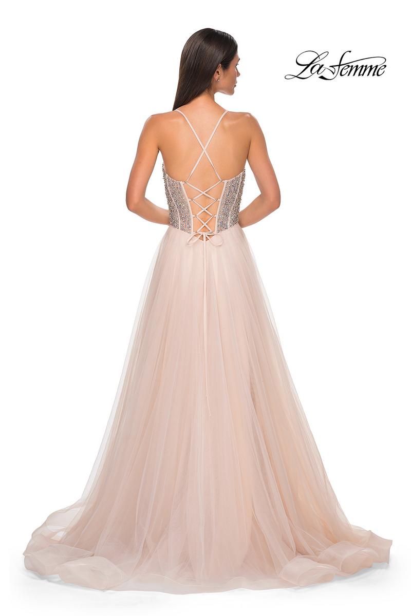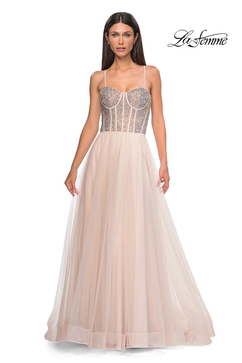 The fabric in this La Femme Prom style is Rhinestone and Tulle