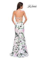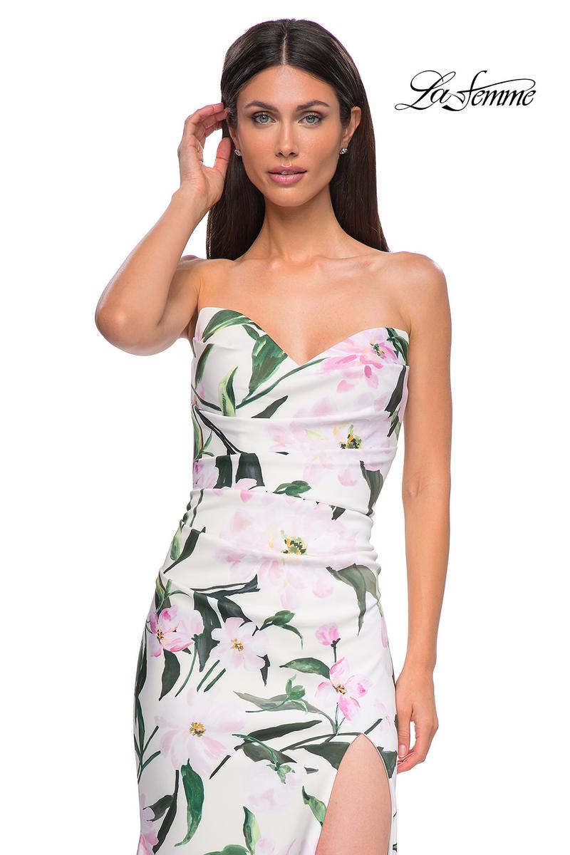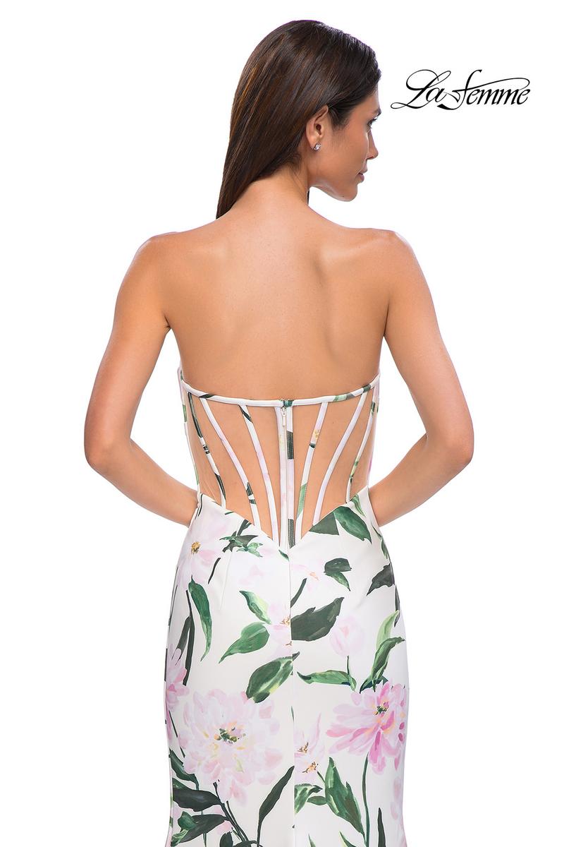 The fabric in this La Femme Prom style is Print Jersey