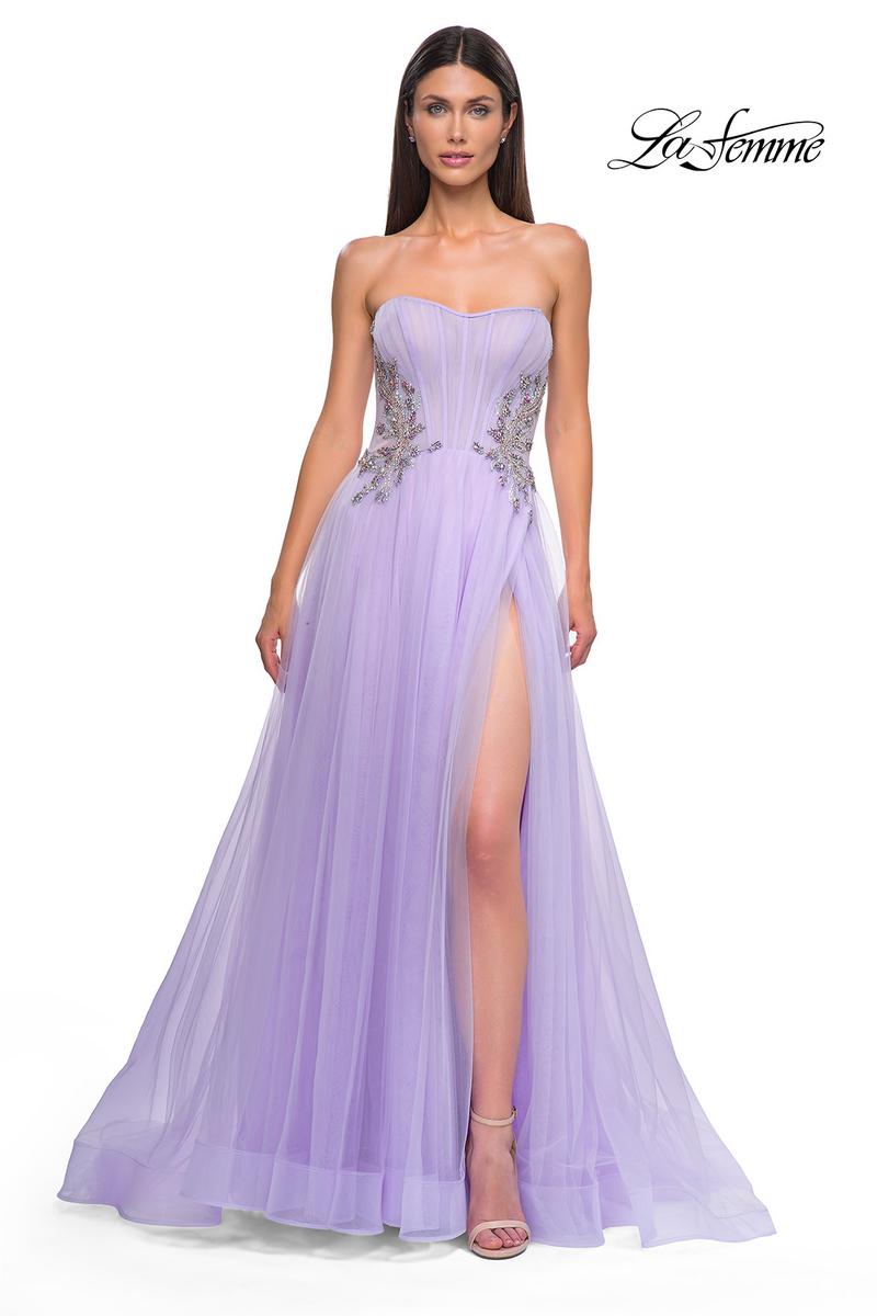 The fabric in this La Femme Prom style is Beaded and Tulle