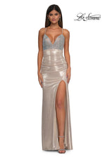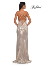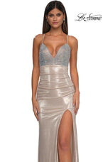 The fabric in this La Femme Prom style is Hot Stone and Jersey