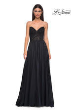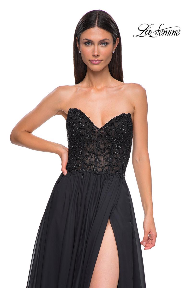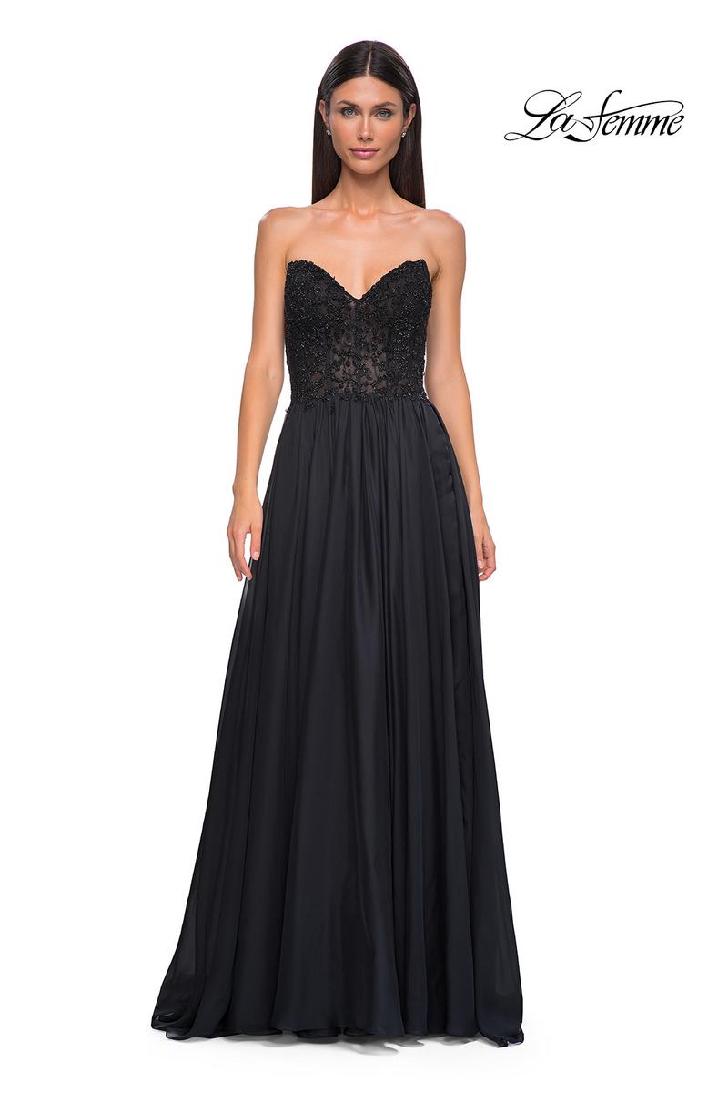 The fabric in this La Femme Prom style is Lace and Chiffon