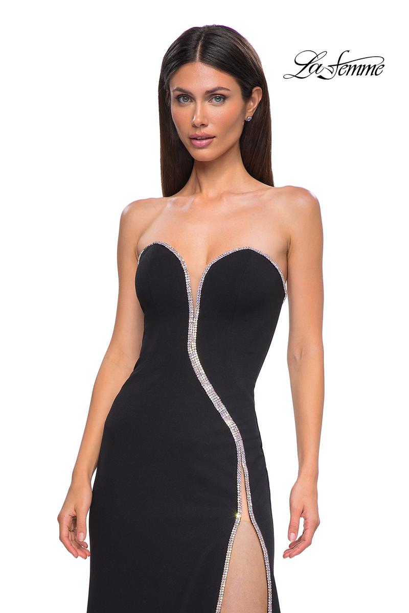 The fabric in this La Femme Prom style is Rhinestone and Jersey