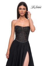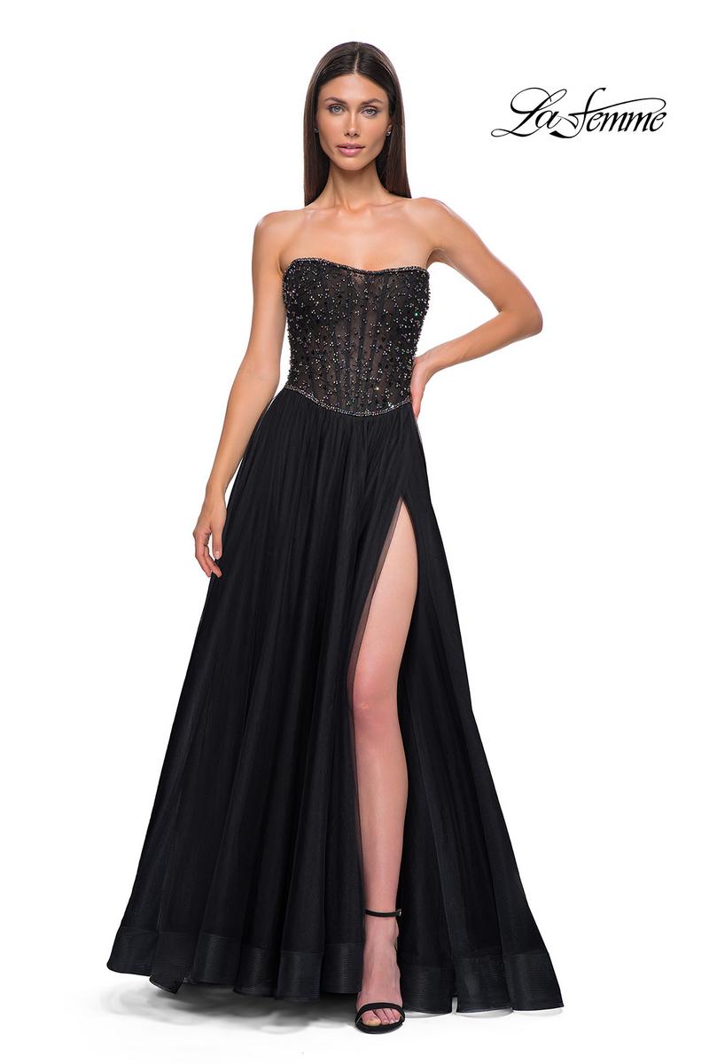 The fabric in this La Femme Prom style is Beaded and Tulle