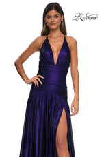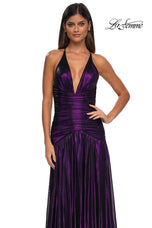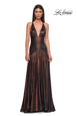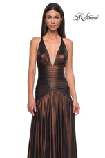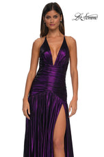 The fabric in this La Femme Prom style is Metallic Net Jersey